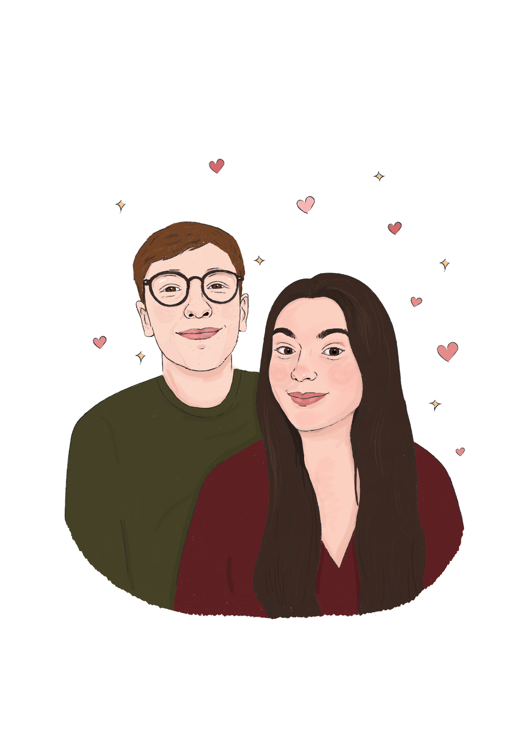 Illustrated portrait commisions drawn in Adobe Illustrator or Photoshop.